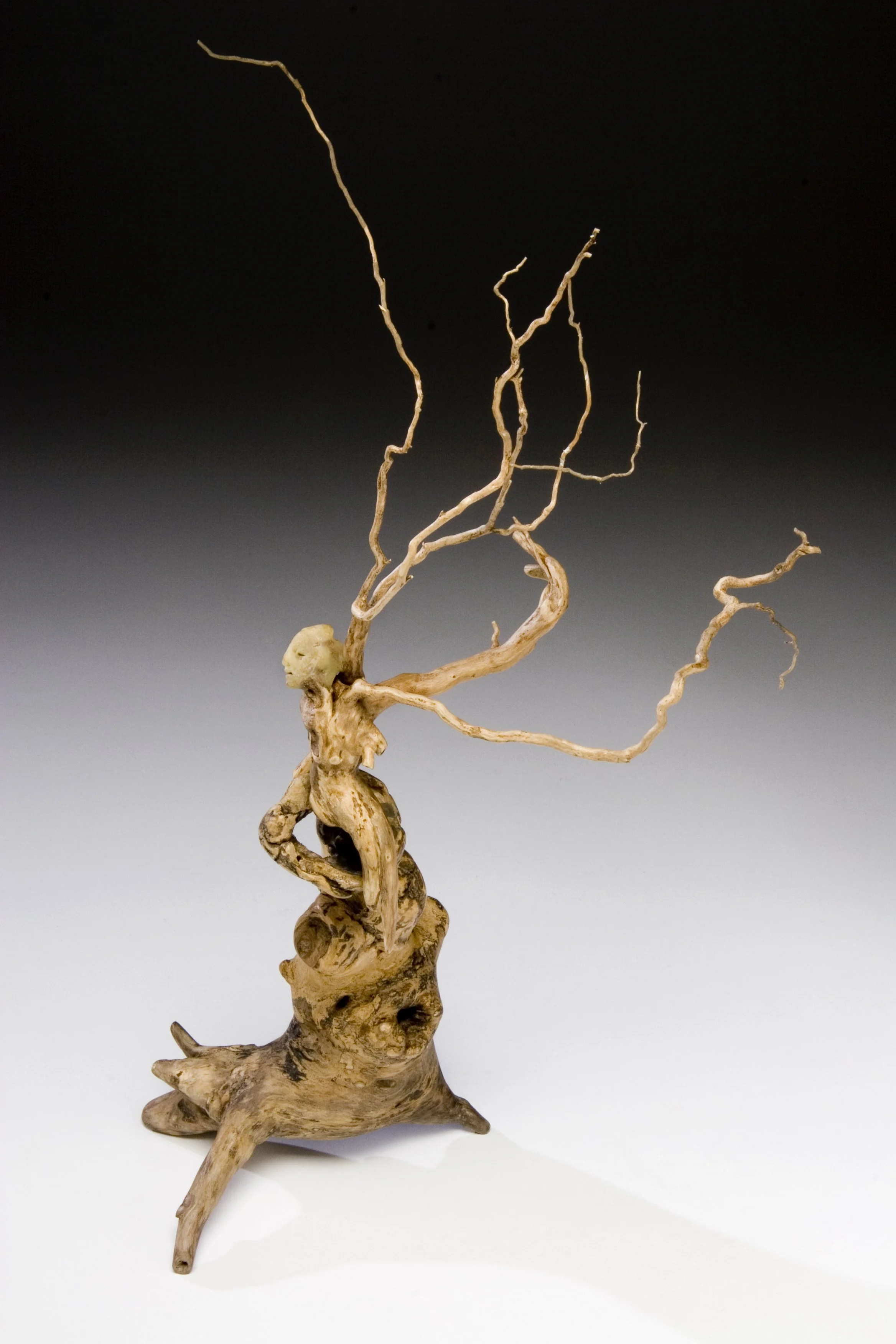 Susanne K. Arnold, "Ovid’s Philemon," Root and encaustic, 19 x10 x 8 inches