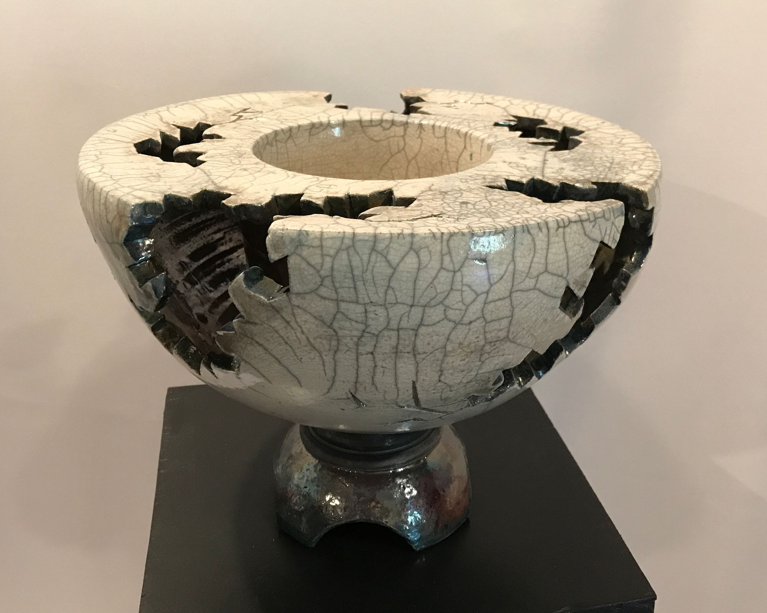 Joel Moses, "Double walled bowl ‘fracture’ series," Raku fired with altered surface, 14 inch diameter x 11 inch height