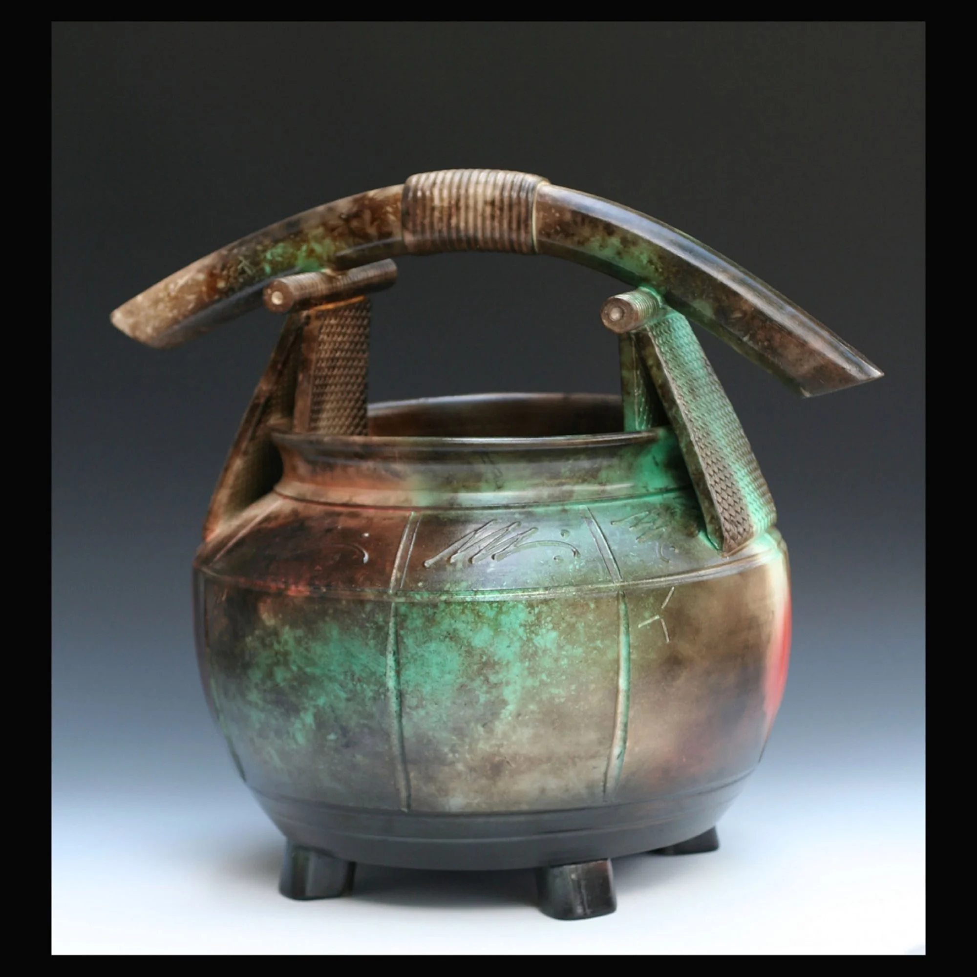 As a studio Potter for over 30 years much of my fascination and exploration has centered around that elusive duality in ceramics, between the form and how it relates to surface, and how that relationship dictates the success or failure of the vessel. After much exploration I came to understand that surface must be primitive and perhaps random in order to compliment the shape and form of my pieces. Over the years I have explored dozens of alternative firing methods, and these pieces represent a return to pit firing…a process I used on vessels long ago. In some ways it’s like returning to an old friend…like no time has passed at all.