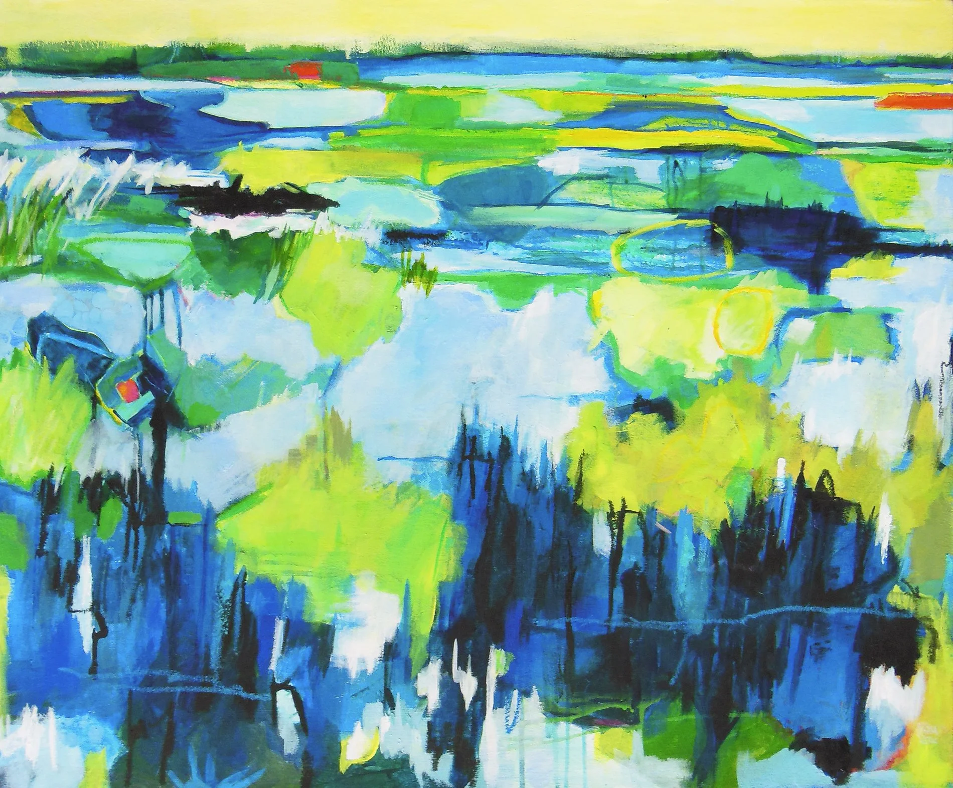 Rosa Vera, "Lotus Fields III," Acrylic on canvas, 30 x 36 inches, 31.5 x 37.5 framed