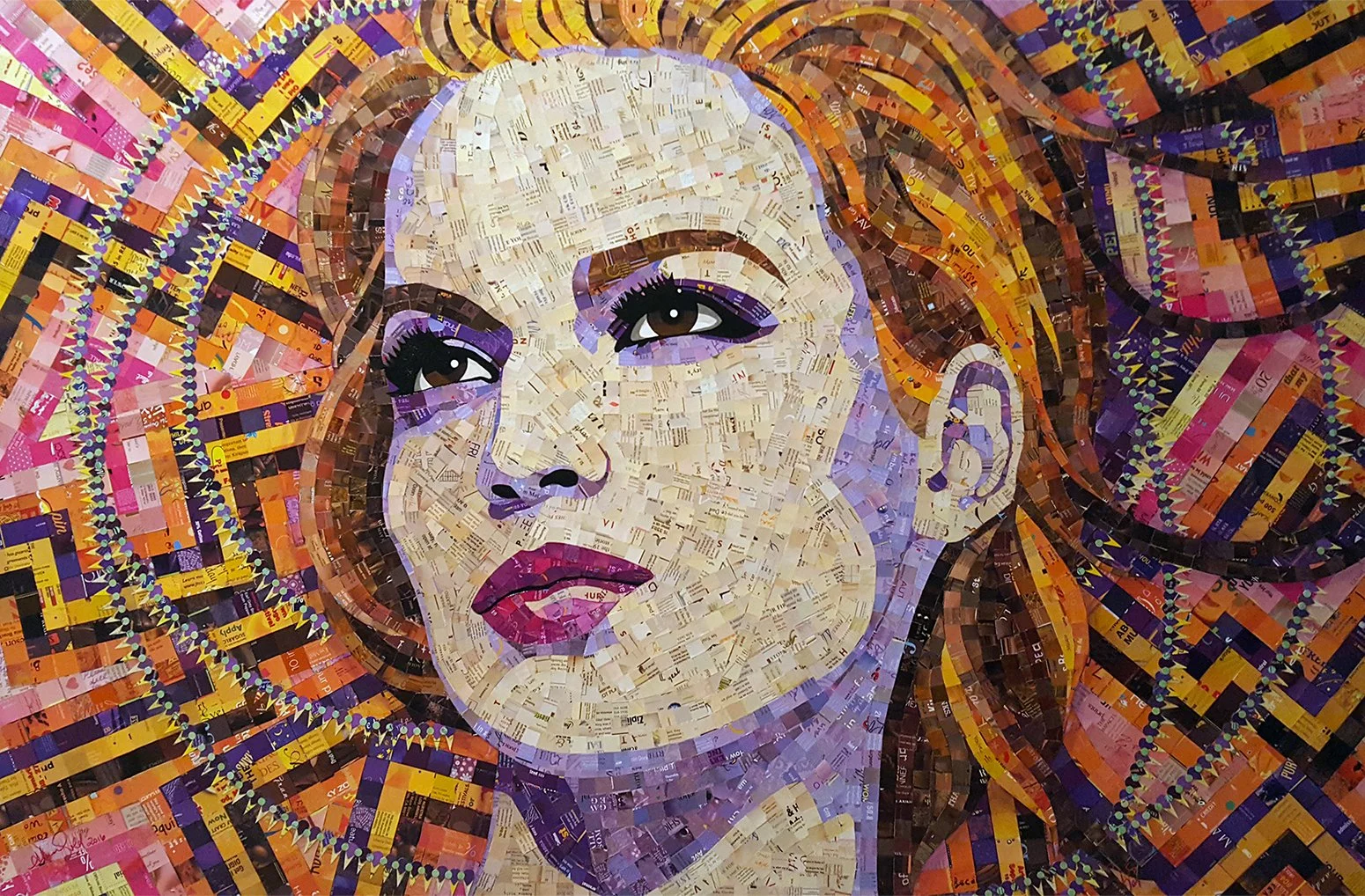 Sandhi Schimmel Gold, "Heaven Can Wait," Junk Mail Mosaic Collage, 40x60, 2019