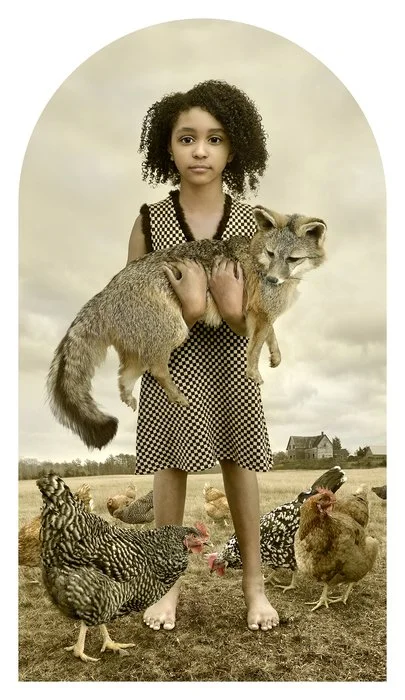 Tales of Heroines Raised in a family alongside four brothers and the absence of sisters, my eyes were opened by my daughter’s growing up experiences from a girl to a teenager to a young woman. As a result, I am in awe of determined young women like my daughter who meet and negotiate both small daily hurdles and major life challenges. Their determination, empathy, and ingenuity in navigating a complex world make them heroines in my eyes. My photographic series Tales of Heroines is a collection of stories about the lives of young women told through portraits. The subjects squarely face the viewer and the images employ a consistent format with a low horizon line, vertical orientation, and arched framing which invites the viewer into the story. Using magic realism, the power of storytelling emanates from the details in the photomontages. The stories are intentionally provocative enticing the viewer to engage with questions about the Tales of Heroines.